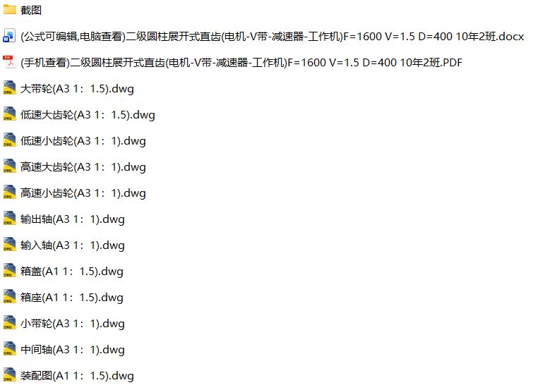 设计二级展开式直齿圆柱齿轮减速器,初始数据F = 1600N,V = 1.5m/s,D = 400mm,设计年限(寿命) : 10年,每天工作班制(8小时/班):2班制,每年工作天数:300天,三相交流电源,电压380/220V。